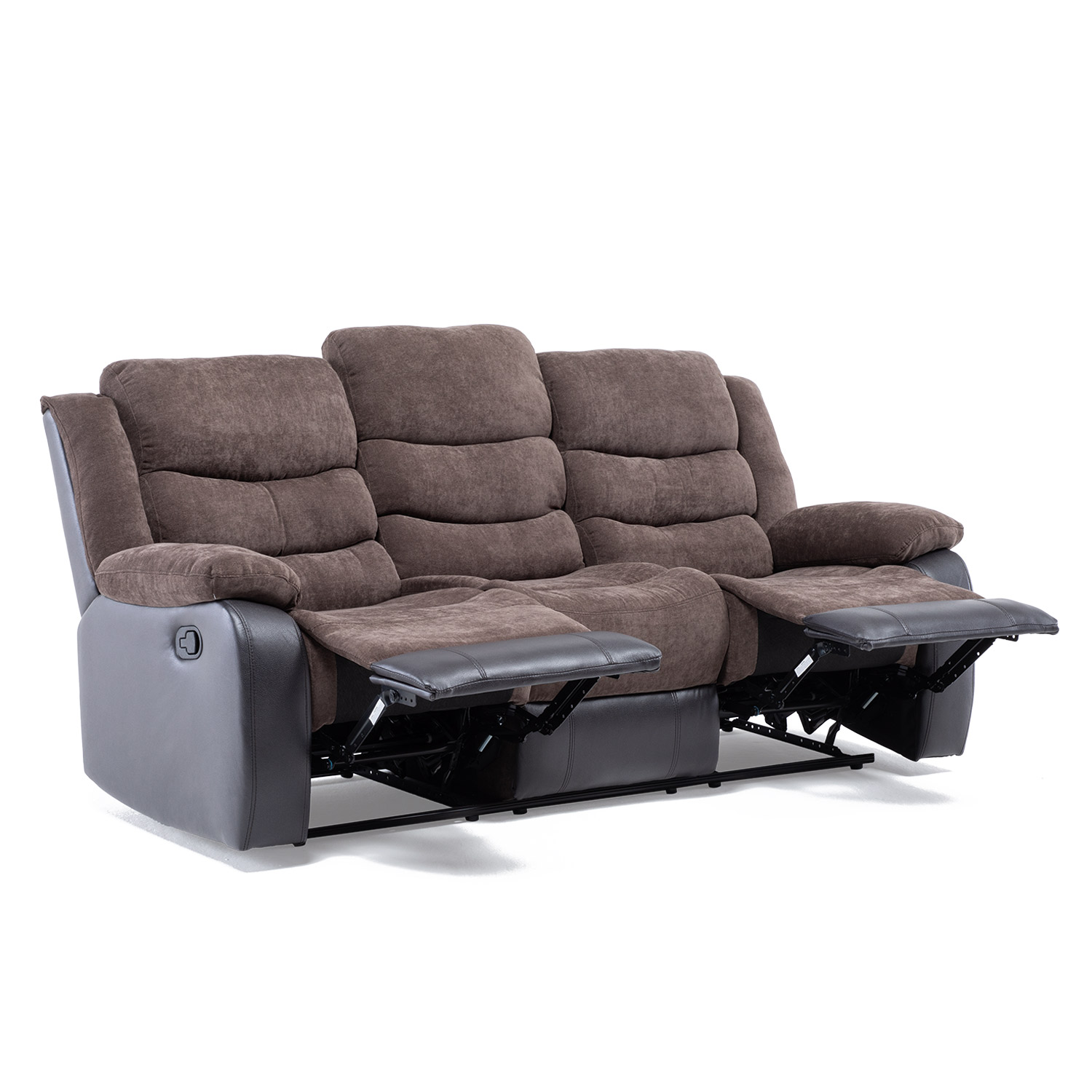 A veces, el verdadero confort es disponer de un rincón propio donde el tiempo se detiene. El sofá reclinable de 3 cuerpos está diseñado para aportar espacio, comodidad y funcionalidad en un solo lugar. Tapizado en Pu bonder reforzado y chenill, combina suavidad y resistencia, brindando una experiencia acogedora en cada uso. El sofá ha sido pensado para ofrecer amplitud sin sacrificar el soporte ergonómico. Ambos cuerpos son reclinables, lo que te permite ajustar cada asiento a la posición ideal para disfrutar de una película, leer un buen libro o simplemente relajarte.